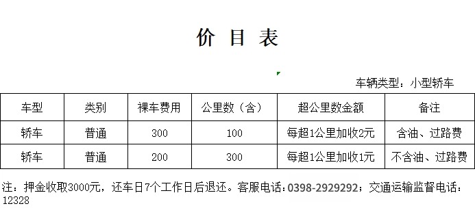 本公司小型轎車車輛租賃,需收繳押金3000元整,開具收據(jù)憑證。依據(jù)車輛租賃流程,按需檢驗車輛,做好交付準備。簽署《汽車租賃合同》、《交接車驗收清單》,即可駕車離去。